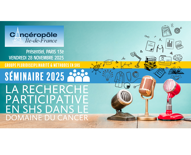 Le cancéropôle Île-de-France organise un séminaire élaboré par son groupe "Pluridisciplinarité et méthodes en SHS" sur les recherches participatives dans le domaine du cancer, le vendredi 28 novembre 2025 à la MAS (Paris 13e).