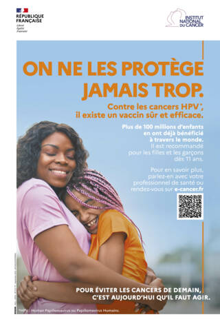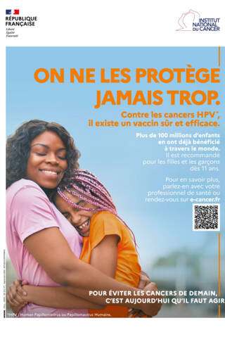 Affichette d'information sur la vaccination contre les cancers HPV (Papillomavirus Humains) pour les filles et les garçons dès 11 ans.