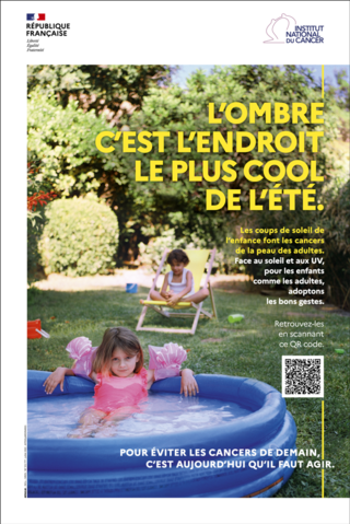 Affichette d'information sur la prévention solaire : "L'ombre, c'est l'endroit le plus cool de l'été."