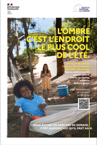 Affichette d'information sur la prévention solaire : "L'ombre, c'est l'endroit le plus cool de l'été."