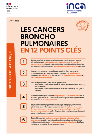 Pour davantage d’informations, vous pouvez consulter l’Outil pour la pratique des médecins généralistes sur les cancers bronchopulmonaires.